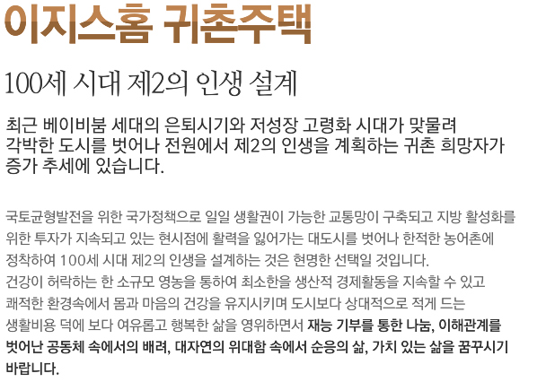 귀촌주택 선택의 착안점 및 이지스홈의 제안